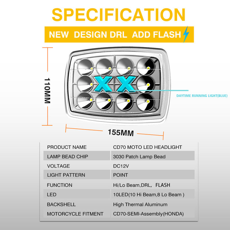| ハイライト: | 12VのオートバイのLEDヘッドライト,CD70 LEDヘッドライト DRL,モーターサイクルの高低ライトヘッドライト |