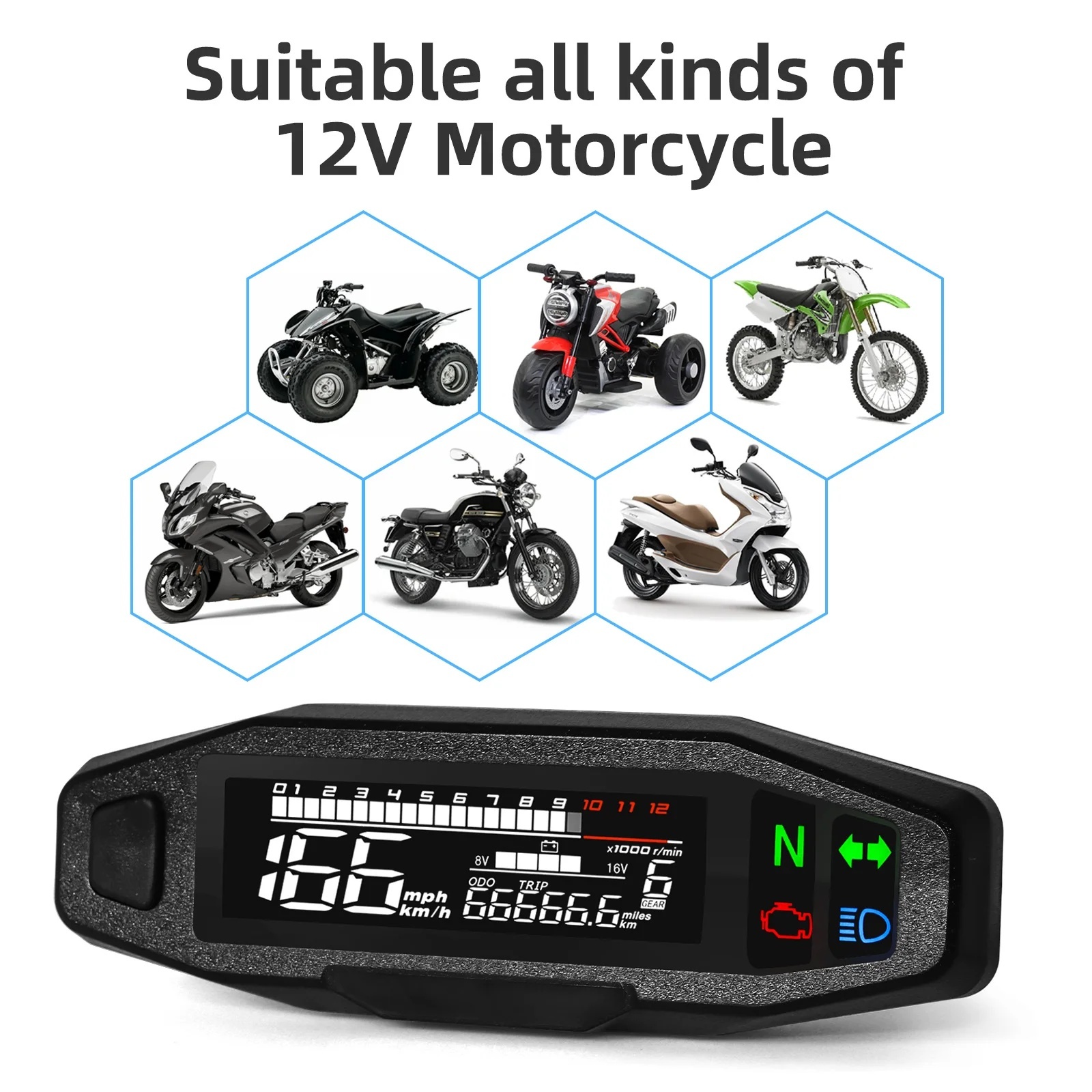 4高度な多機能性: バイク愛好者のための完全なソリューションとして設計されたこの計数器ディスプレイは,オードメーター,スピードメーター,タホメーターとして機能します.複数の重要な指標を同時に監視できるようにします.