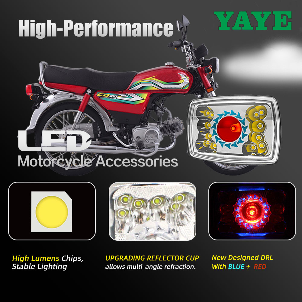 機能 | 12LED長光灯と6LED低光灯 道路灯の中央と境界色はそれぞれ赤と青です |