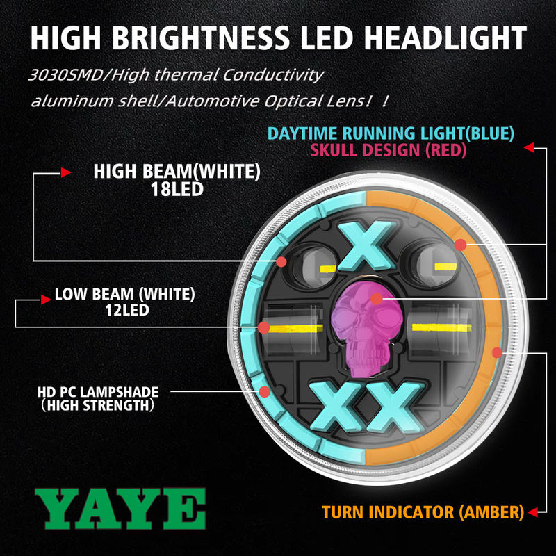 | ハイライト: | GN125 LED オートバイ ヘッドライト,5.75インチ DRL ヘッドライト,赤いスカル LED ヘッドライト 光学レンズ付き |