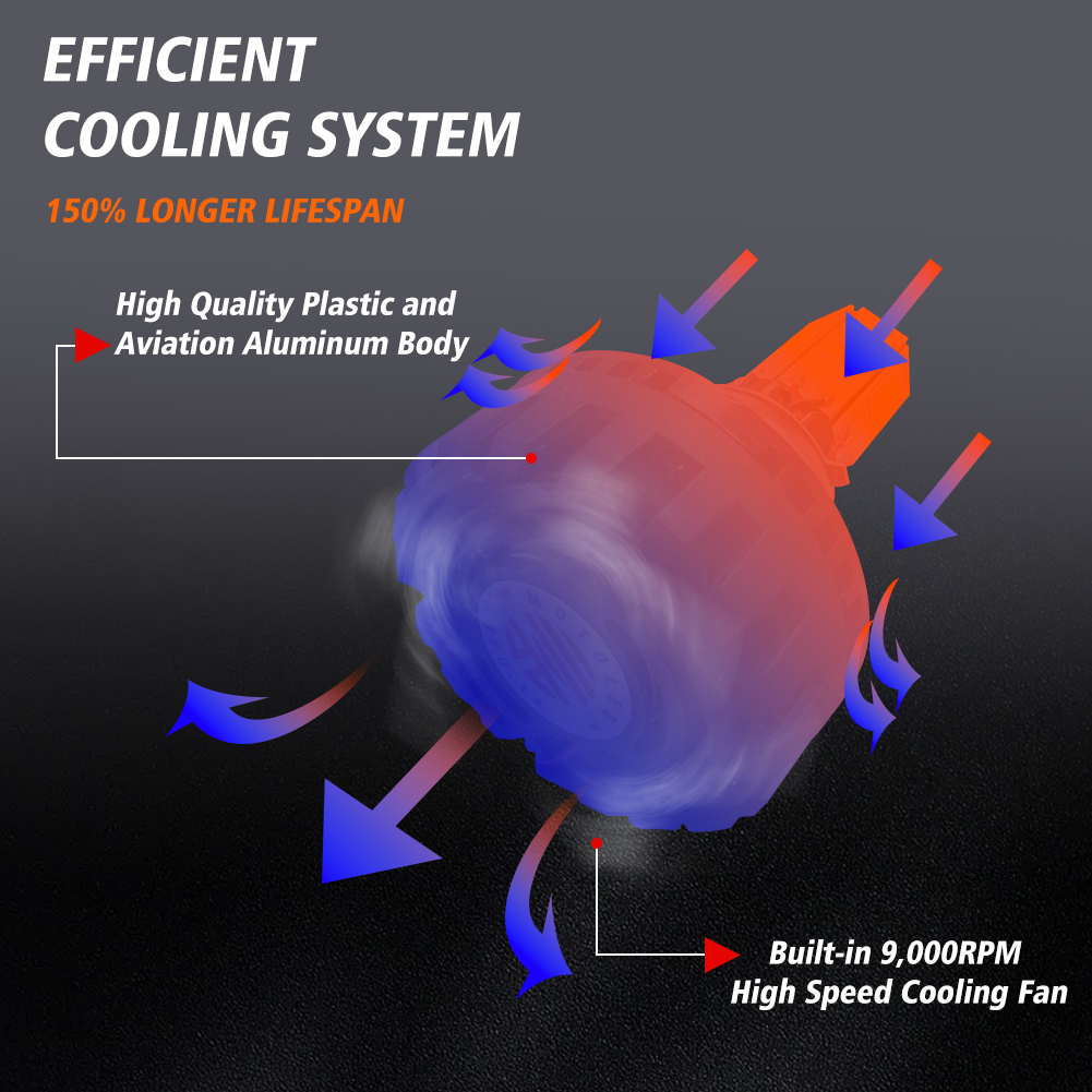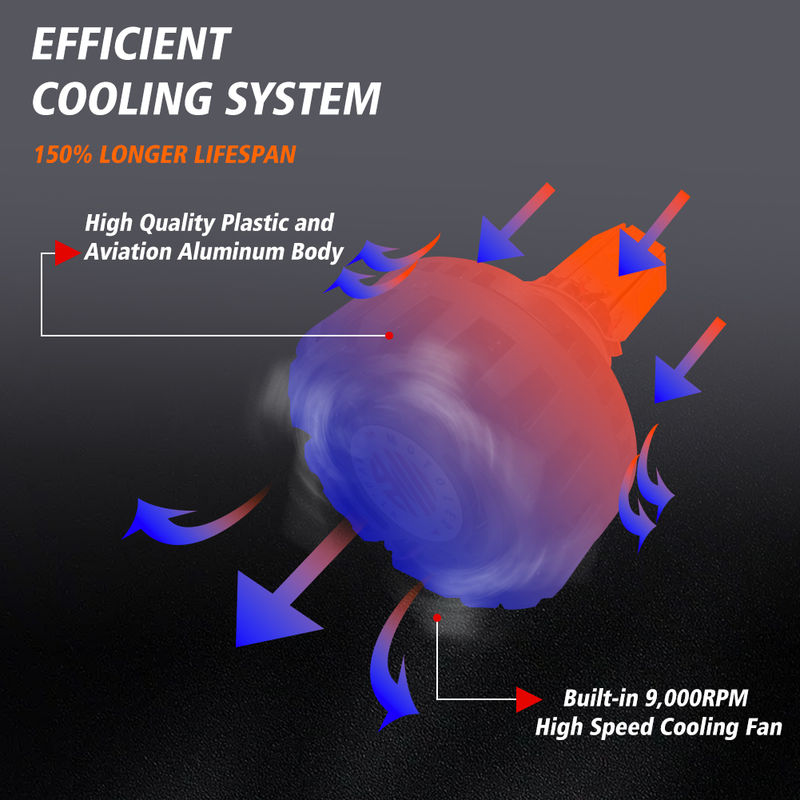 耐久性 | 9,000RPMの高速ミュートファンとシェルフィンデザインが効果的な冷却システムを形成し、IP67防水、50,000時間以上の明るい連続光。 より良いビーム |